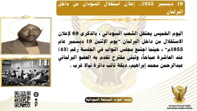 ▪︎ اليوم الخميس يحتفل الشعب السوداني ، بالذكرى 69 لإعلان الاستقلال من داخل البرلمان والذي كان يوم الإثنين 19 ديسمبر…