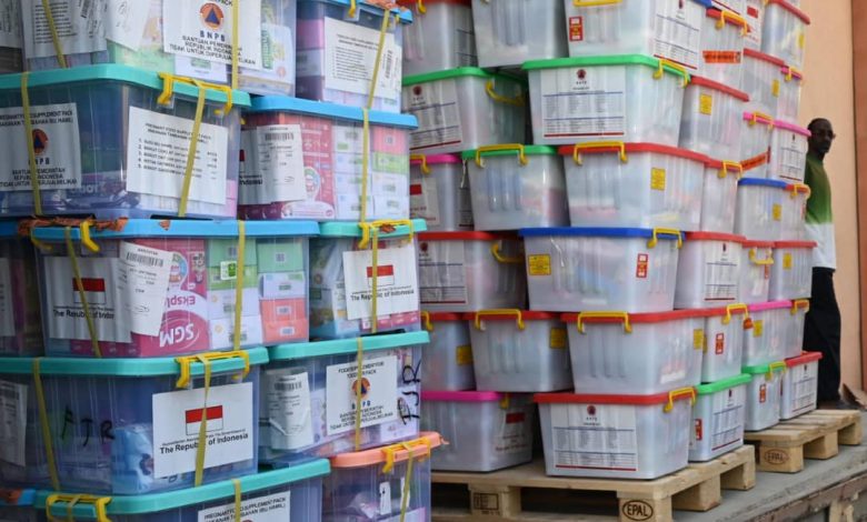 و عدد 4 مكيفات كبيرة 10 الف وحدة صحراوي و 8 مراوح ،فضلا عدد 253 كرتونة ادوية و مستهلكات طوارئ لحلفا و القضارف من منظمة الصحة العالمية.