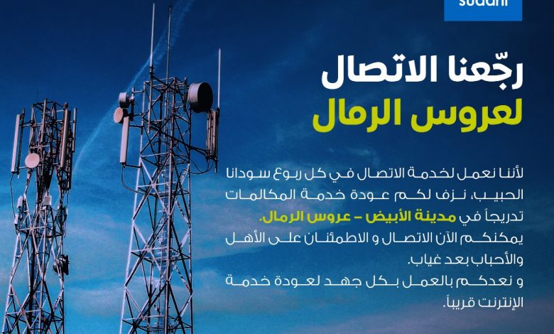 وقالت ادارة سوداني في بيان صحفي ” لأننا نعمل لخدمة الاتصال في كل ربوع سودانا الحبيب، نزف لكم عودة خدمة المكالمات تدريجاً في مدينة الأبيض – عروس الرمال.