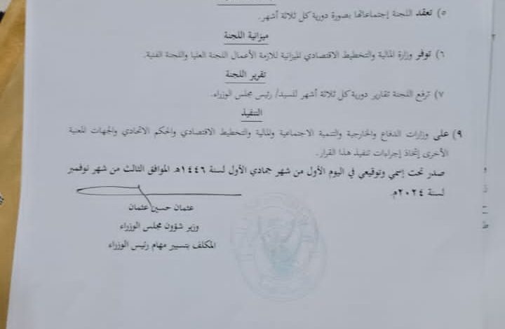 أصدر مجلس الوزرا ء قرارا باعادة تشكيل اللجنة العليا رفيعه المستوى لمتابعة وتنفيذ الخطة الوطنيه لحمابة الاطفال ومنع جميع الانتهاكات في حالات النزاعات.