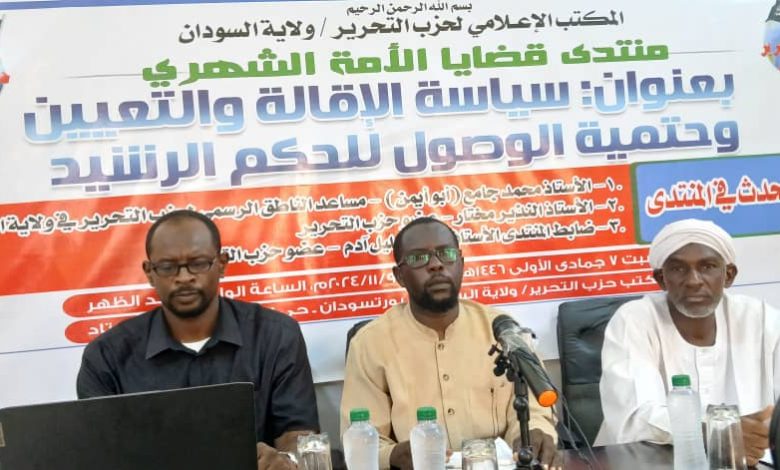 أقام حزب التحرير، ولاية السودان منتداه الشهري منتدى قضايا الأمة لشهر نوفمبر يوم السبت 7 جمادى الأولى 1446ه الموافق 9/11/2024م الذي كان بعنوان: سياسة الإقالة والتعيين وحتمية الوصول للحكم الرشيد، وتحدث في المنتدى كل من محمد جامع (أبو أيمن) – مساعد الناطق الرسمي لحزب التحرير في ولاية السودان، والنذير مختار – عضو حزب التحرير، وعبد الجليل آدم – عضو حزب التحرير.