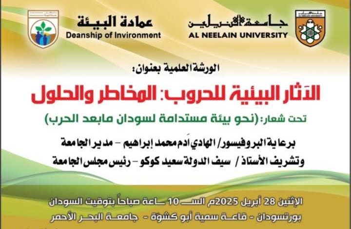 ونوهت ان الهدف من الورشة هو تقديم” رؤى وأفكار عملية وعلمية للحد من التلوث وتعزيز الوعي البيئي”، بالإضافة إلى تحليل تأثيرات الحرب على النظم البيئية والمجتمعات المحلية ودراسة المخاطر البيئية الناجمة عن استخدام الأسلحة والمتفجرات، على عدد من مناطق السودان