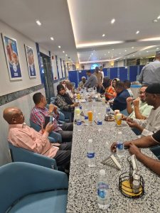 في مساء مفعم بالحب والانتماء، اجتمع نبلاء المريخ أمس الأربعاء على مائدة العطاء بمطعم “أمواج” بمدينة نصر في القاهرة، حيث امتزجت الألفة الحمراء بعبق الوفاء. كان اللقاء احتفاءً بأعضاء لجنة التسيير، الأستاذة ميرفت حسين والأستاذ سامر العمرابي، وتكريماً لخطوات مولانا عمار الحاج قبل عودته إلى الإمارات، كما احتفي النبلاء ايضا بالأستاذ هشام عزالدين، المدير الإعلامي بنادي المريخ، بباقة محبة وعرفاناً بدوره.