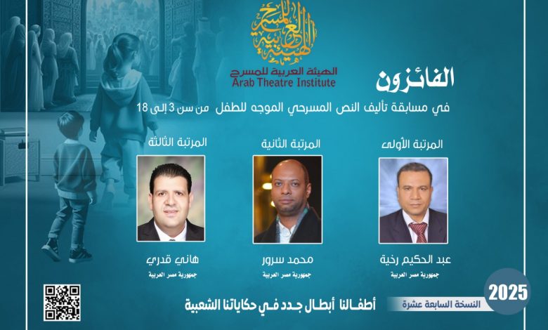 في مشهد يؤكد ازدهار الإبداع المسرحي العربي الموجّه للطفل، أعلنت الهيئة العربية للمسرح نتائج النسخة السابعة عشرة من مسابقة تأليف النص المسرحي الموجَّه للطفل (من 3 إلى 18 سنة)، بعد منافسة حادة بين عشرات النصوص التي وصلت إلى قائمة العشرين المتأهلة. وقد خُصصت هذه الدورة لتكون ضمن ناظم “أطفالنا أبطال جدد في حكاياتنا الشعبية”، في توجه فني يرمي إلى استلهام التراث وتجديده بلغة معاصرة.