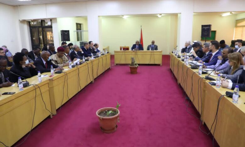 جاء ذلك خلال تقديمه تنويراً للسفراء وأعضاء السلك الدبلوماسي و ممثلي المنظمات الإقليمية والدولية المعتمدة لدى السودان حول قرارات البرهات ونتائج القمة الطارئة للإيقاد رقم 39 وتخريج الدفعة الأولى من قوة حماية المدنيين بدارفور .