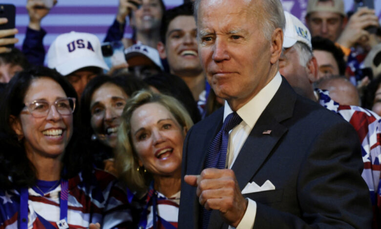 وأظهر الفيديو بايدن وهو يمد يده للمغنية الإسرائيلية يوفال دايان، التي رفضت المصافحة، مكتفية بوضع يدها على صدرها رداً على تحية بايدن.