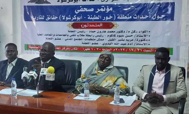 لجنة الطوارئ في أحداث “خور الطينة وأبو كرشولا” تطالب بفرض هيبة الدولة ومحاكمة الجناة ..