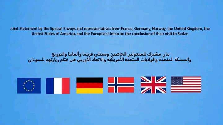 اختتم المبعوثون الخاصون والممثلون من (فرنسا وألمانيا والنرويج والمملكة المتحدة والولايات المتحدة الأمريكية والاتحاد الأوربي) زيارة مشتركة إلى الخرطوم دعماً لشعب السودان ومطالبتهم باستئناف قيادة مدنية للانتقال إلى الديمقراطية.