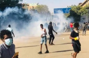 الشرطة تطلق الغاز المسيل للدموع على متظاهرين في موكب الرهيفة تنقد بالقرب من “شروني” كانوا متجهين نحو القصر الرئاسي وسط الخرطوم
