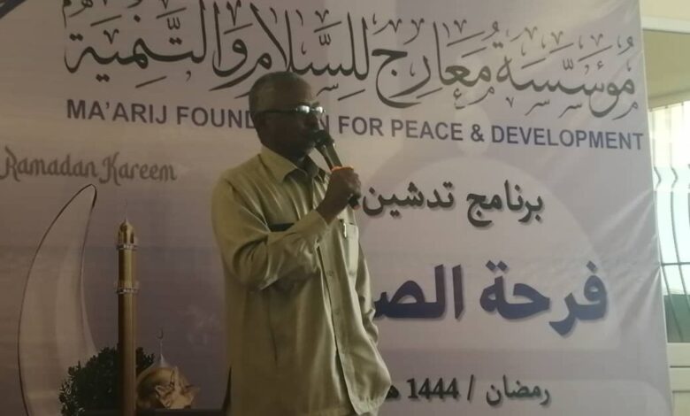 دشنت مؤسسة معارج للسلام والتنمية اليوم بالخرطوم برنامج فرحة الصائم وسط مشاركة فاعله من مجلس إدارة المؤوسسة وبعض الجهات ذات الصلة وذلك بعدد ٥٠٠ كرتونه تضم كل احتياجات الصائم،بحضور السيد حاتم عثمان الشريف مدير مؤسسة معارج للسلام والتنمية المؤسسة، حيث