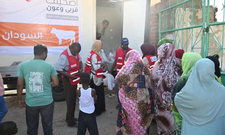 الهلال الأحمر القطري يوزع لحوم الأضاحي على مراكز الايواء والأسر المتعففة في السودان