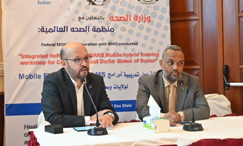 أختتمت اليوم الخميس ورشة العمل التدريبية لبرنامج HeRAMS وMobileEWARS،( نظام الإنزار المبكر والتنبيه والاستجابة ونظام مراقبة توفر الموارد والخدمات الصحية) لولايات وسط وشرق دارفور، والتي استمرت لمدة ثلاث ايام، والذي نظمته وزارة الصحة الاتحادية بالتعاون مع منظمة الصحة العالمية بفندق كورال والتي تهدف إلى رصد الأوبئة والاستجابة لها.