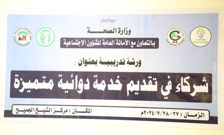 فيما أكد ممثل المجلس القومي للادوية والسموم الدكتور محجوب نجيب محجوب علي إستمرار الشراكة بين الصندوق القومي للامدادات الطبية والصندوق القومي للتأمين الصحي وشركاء العمل الصحي وصولا لتقديم خدمات صحية ودوائية متميزة للمواطن الجدير بالذكر أن الورشة تقدم خلالها العديد من أوراق العمل المهمة من بينها نبذة تعريفية عن سلسلة الامداد الطبي ونبذة تعريفية عن التأمين الصحي وضوابط الصرف والموجهات العامة لتقديم الخدمة الدوائية والتدريب علي دفاتر الاشراف والممارسة الصيدلانية الجيدة بالصيدليات والتدريب علي الدفاتر المالية والاستخدام المرشد للادوية ومهارات التواصل مع متلقي الخدمة وممارسات التخزين الجيد وإدارة المخزون