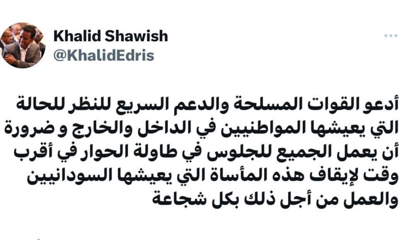 خالد شاويش يدعو الجيش والدعم السريع للجلوس للتفاوض