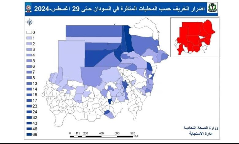 اكدت غرفة طوارئ الخريف،أن تراكمي الإصابات بسبب الأمطار والسيول بالولايات المتأثرة (513)إصابة، منها (177) وفاة، فيما تأثرت (40096)اسرة،والأفراد (176502) فردا،من (11) ولاية، (54) محلية، (593) منطقة،في حين انهار كليا (18838) منزلا،وجزئيا (15074) منزلا،لافتا إلى تنفيذ العديد من التدخلات للمكافحة بجانب المشاكل والمعوقات.