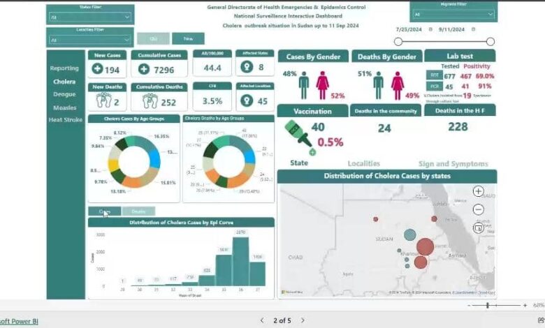 ونوه تقرير صحة البيئة والرقابة على الأغذية، إلى تنفيذ عدة أنشطة لمكافحة الكوليرا في المحاور المختلفة في عدد من الولايات المتأثرة، في وقت لفت تقرير تعزيز الصحة إلى المكافحة عبر الحوارات المجتمعية والزيارات المنزلية بجانب الرسائل عبر أجهزة الاعلام ووسائل التواصل الاجتماعي.