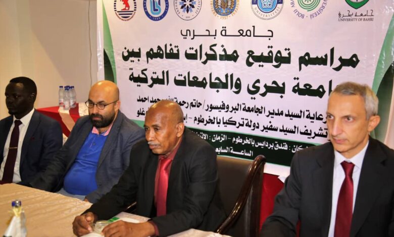 التقى مدير جامعة بحري البروفيسور حاتم رحمة الله محمد أحمد صباح اليوم بمدينة بورتسودان سعادة السفير فاتح يلدز سفير دولة تركيا الجديد بالسودان، وقد ناقش اللقاء سبل التعاون الأكاديمي بين جامعة بحري والجامعات التركية، والتي وقعت معها اتفاقيات تعاون شملت أكثر من (12) جامعة ومركز تتعلق بتدريب الكوادر الأكاديمية وغير الأكاديمية وتبادل الطلاب والأساتذة وإجراء البحوث المشتركة وتطوير البنية التحتية. وفي ذات الصياغ، فقد منحت لجنة التعليم العالي التصديق للجامعة لإنشاء فرع لها بمدينة ملاطيا يعمل على استقطاب الطلاب على مستوى البكلاريوس والدراسات العليا، علما بأن لدى جامعة بحري فرعين تم التصديق لهما من قبل السلطات المختصة في كل من المملكة العربية السعودية وجمهورية مصر العربية سيفتتحان قريبا.