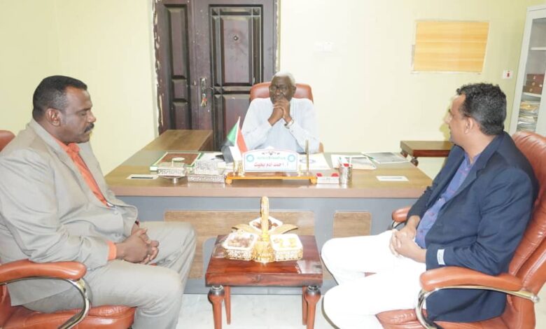 بخيت لدى لقائه صباح اليوم مدير التأمين الصحي فرع ولاية القضارف دكتور سر الختم الطيب الفكي ووفد رئاسة الصندوق القومي برئاسة دكتور بدرالدين عركي