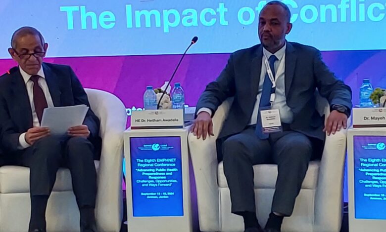شارك السودان بوفد من وزارة الصحة الاتحادية برئاسة وزير و بمشاركة سفير السودان الملحق الطبي بسفارة السودان بالمملكة الاردنية الهاشمية في المؤتمر الثامن للشبكة الشرق اوسطية للصحة العامة بمشاركة أكثر من 300مشارك من 15دولة بالإضافة إلى المنظمات العالمية العاملة في مجال الصحة، ووكالات الأمم المتحدة، والمنظمات العاملة في الشرق الأوسط، ومنظمة الصحة العالمية، بجانب الوجود الفاعل من الخبراء في مكافحة الأمراض من أميركا، والخبراء والمختصين في مجالات الصحة العامة، بعمان العاصمة الأردنية، والذي بدأ من 15 ويستمر حتى 18سبتمبر الجاري بمشاركة عدد من الجهات والمختصين في مجالات الصحة،خصصت جلسة عامة خاصة بالسودان لعرض الوضع الصحي الراهن و كذلك جلسة حرارية موسعة بمشاركة وزير الصحة تم فيهما النقاش حول كيفية تسليط الضوء علي الاحتياجات الصحية و الإنسانية في السودان و كذلك جلب مزيد من الدعم و الاهتمام للاستجابة للاحتياجات العاجلة و كذلك للاسهام في إعادة التأهيل و البناء.