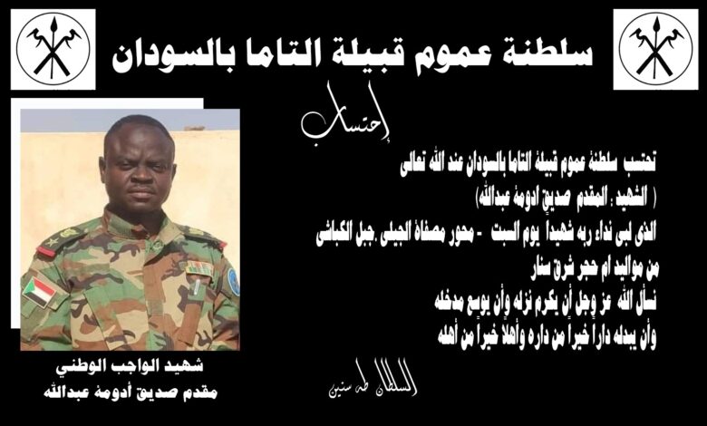سلطنة عموم التاما بالسودان تحتسب الشهيد المقدم صديق ادومة عبدالله