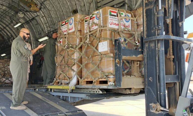 سيارات ومساعدات اغاثية ضمن الطائرة ال16 من الجسر الجوي الكويتي للسودان