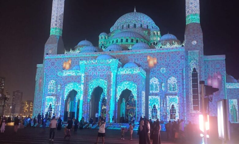 الجدير بالذكر ان مسجد النور بإمارة الشارقة يعد مسجد عتيقا يمه عدد مقدر من المصليين والزائريين، كما يعد أحد معالم الإمارة الباسمة لتصميمه الفريد ، ويشهد العديد من الفعاليات المهمة بجانب الخط كمهرجان الأضواء بالشارقة .