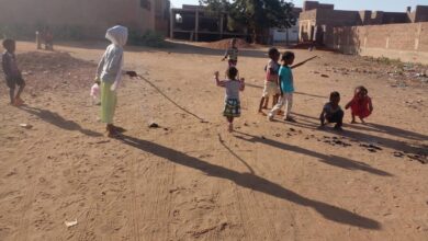 أطفال يترسون شارع في توتي ويرددون شعارات الثورة ..