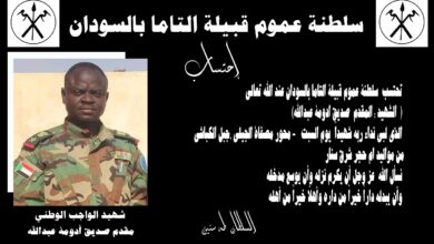 بسم الله الرحمن الرحيم سلطنة عموم قبيلة التاما بالسودان احتساب : قال تعالى : ( وَلَنَبْلُوَنَّكُمْ بِشَيْءٍ مِنَ الْخَوْفِ وَالْجُوعِ…