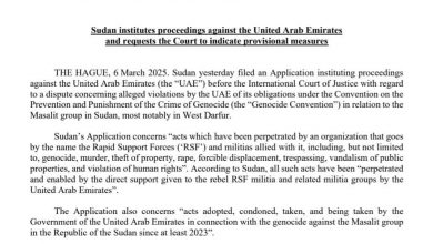 دفع السودان بشكوى إلى محكمة العدل الدولية في لاهاي ضد دولة الإمارات تتهمها فيها “بالتوطؤ في إبادة جماعية” بحق قبيلة…
