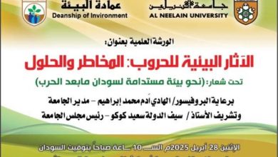 متابعات ؛ التايمز نيوز تناقش عمادة البيئة بجامعة النيلين، صباح الاثنين المقبل الآثار البيئية للحرب والمخاطر والحلول، وتشارك فى النقاش،…