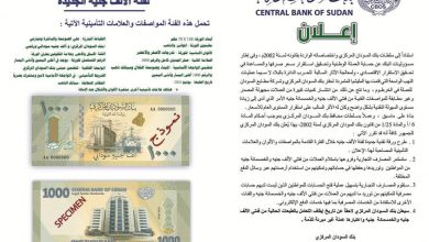 أعلن بنك السودان المركزي عن طرح ورقة نقدية جديدة من فئة الألف جنيه للتداول في الأيام القادمة.. اليكم نص بيان…