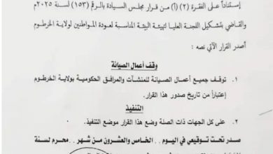 قرار بإيقاف صيانة المرافق الحكومية بالخرطوم